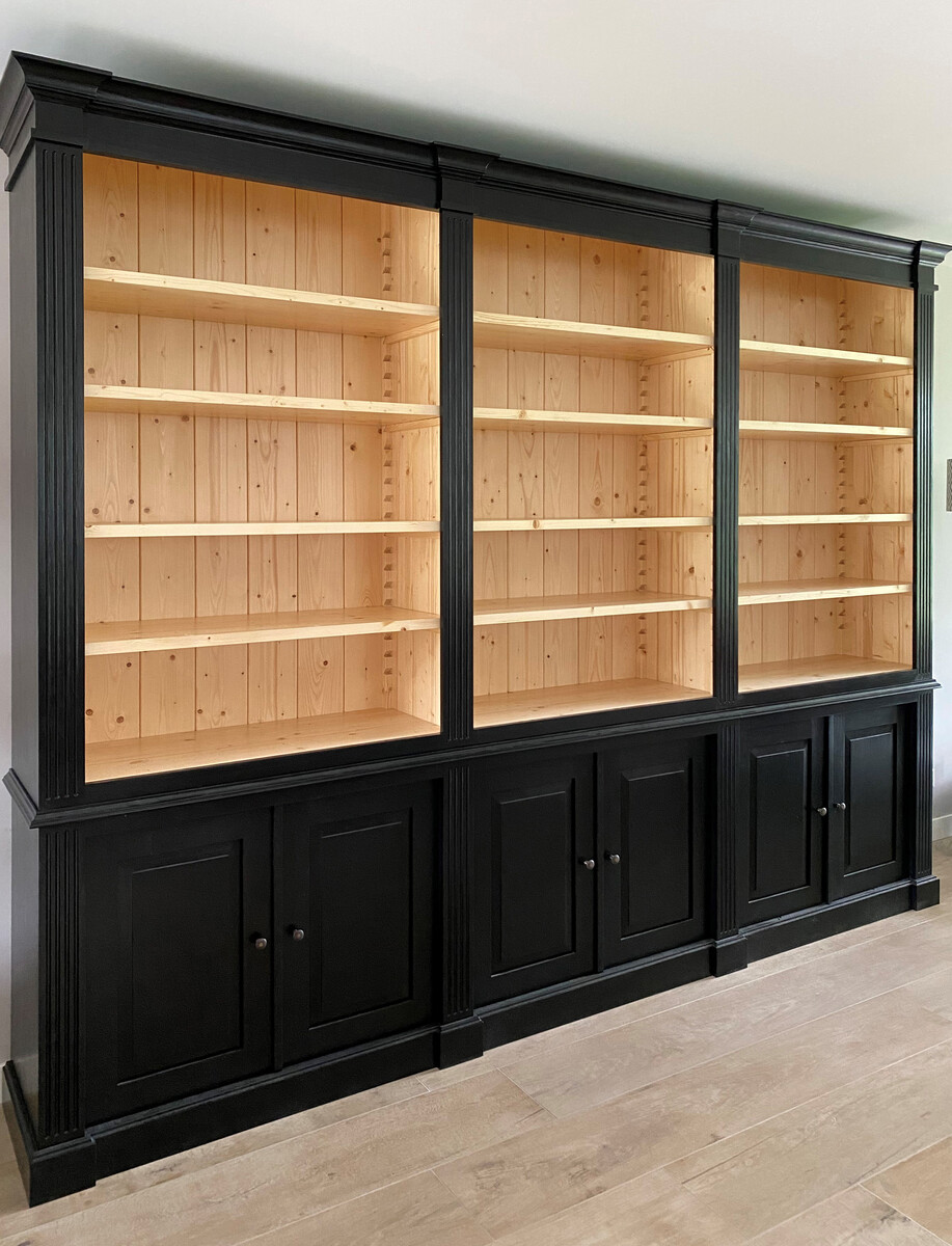 Inndoors boekenkasten zijn tijdloos, landelijk en klassiek, maar ook modern. Door te spelen met detail, kleur en afmeting kiest u de uitstraling die past in uw interieur. Deze prachtige zwarte bibliotheekkast komt vrijwel in ieder interieur tot zijn recht. Onze kasten kunnen worden voorzien een ladder. Standaard zijn onze kasten uitgerust met uittrekplanken en deurtjes in het onderdeel. Door de verstelbare planken bepaald u zelf de indeling van de kast. Wenst u liever laden ipv uittrekplanken? Of Is de afmeting van de kast net niet passend in uw interieur? Onze kasten zijn ook op maat verkrijgbaar geheel naar uw wensen.