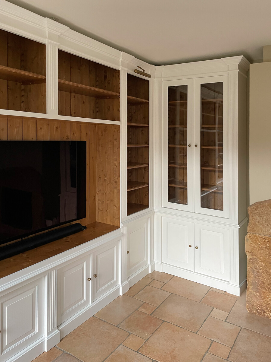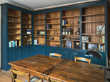 Met een boekenkast in een hoekopstelling creëert u thuis die intieme bibliotheeksfeer. De boekenkast loopt mee en voelt één met de ruimte. Voor deze boekenkast is er gekozen voor een olijfkleurige buitenzijde gecombineerd met een witte binnenzijde. Door de verstelbare planken kan de kast naar wens ingericht worden. Het onderdeel is uitgerust met deurtjes en uittrekplanken.